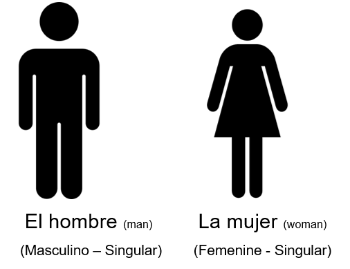 Spanish has “gender” for nouns, adjectives, pronouns and articles: MASCULINE and FEMININE. Spanish also has “number” for nouns, adjectives, pronouns and articles: SINGULAR and PLURAL.